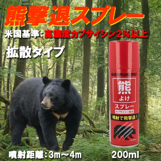 送料無料(沖縄一部他離島は除く)熊撃退スプレー 熊よけ 200ml 拡散タイプ 噴射距離4m アメリカ基準 高濃度カプサイシン2%以上