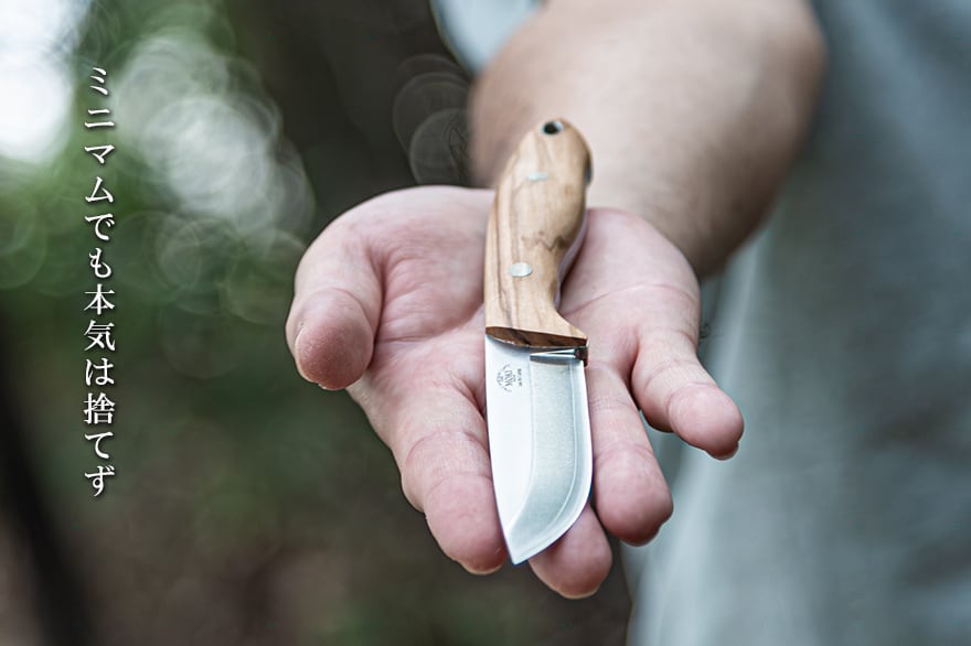 純日本製としてはとても珍しいコンベックスグラインド採用(比較的浅めのコンベックスのためスカンジ感覚で使用できます)