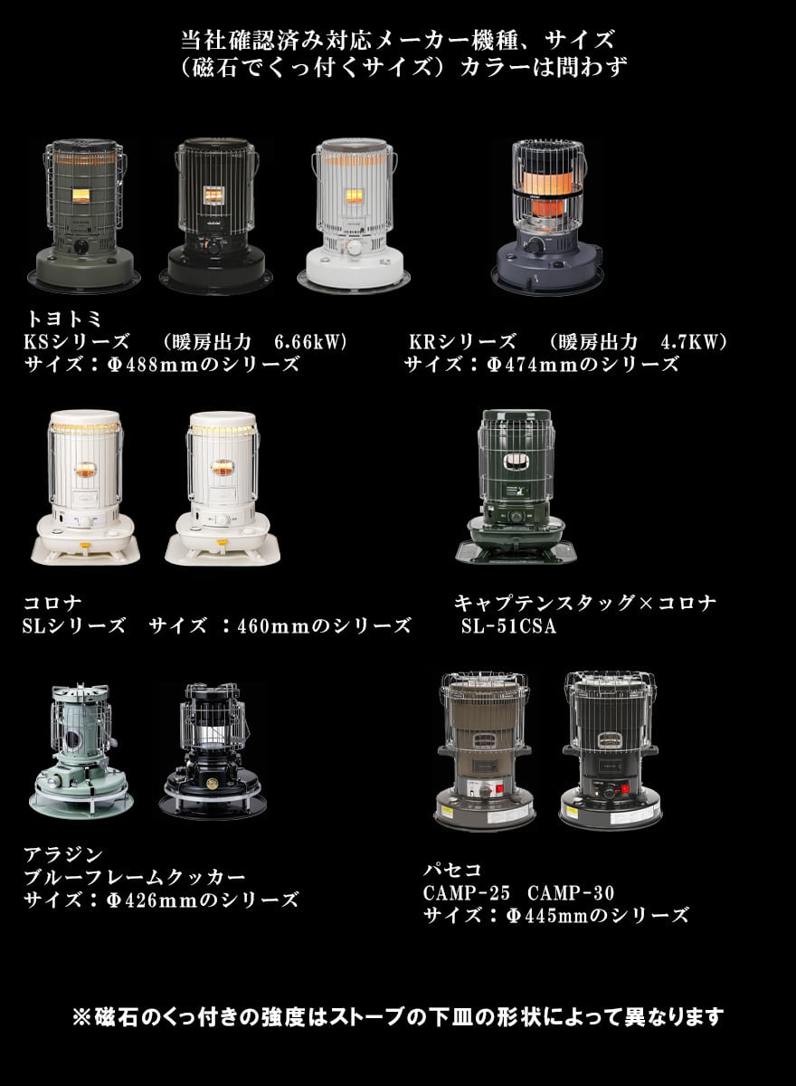 ※磁石のくっ付きの強度はストーブの下皿の形状によって異なります
