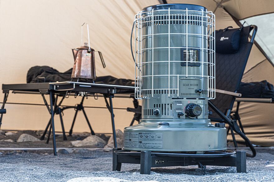 大きな特徴として、ストーブを載せると足がくっついて一緒に移動ができるので