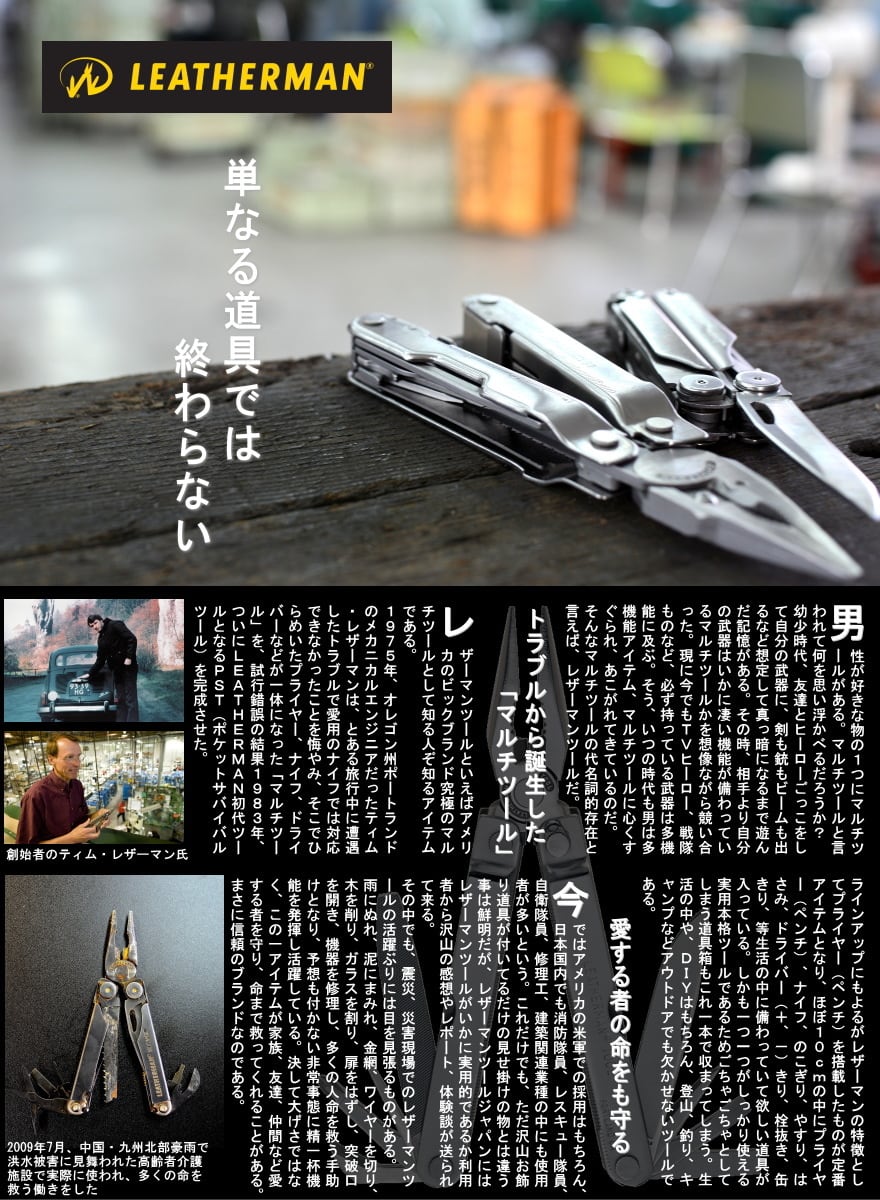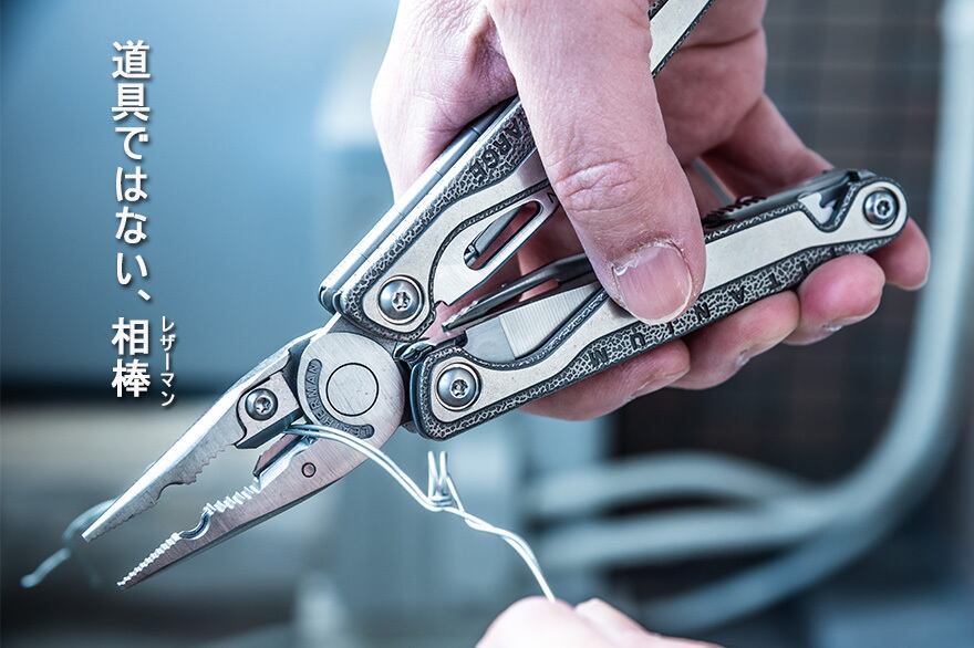 ペンチ ナイフ ノコギリ ドライバーなどこれ一本で19種類入っているマルチツール。日本でも消防隊 レスキュー隊 自衛隊 建築関連にも使用 レザーマンツールジャパン正規取り扱い 日本品質にて検品、検査、調整を行っています。25年間、無償にて修理対応(※消耗部品は対象外)